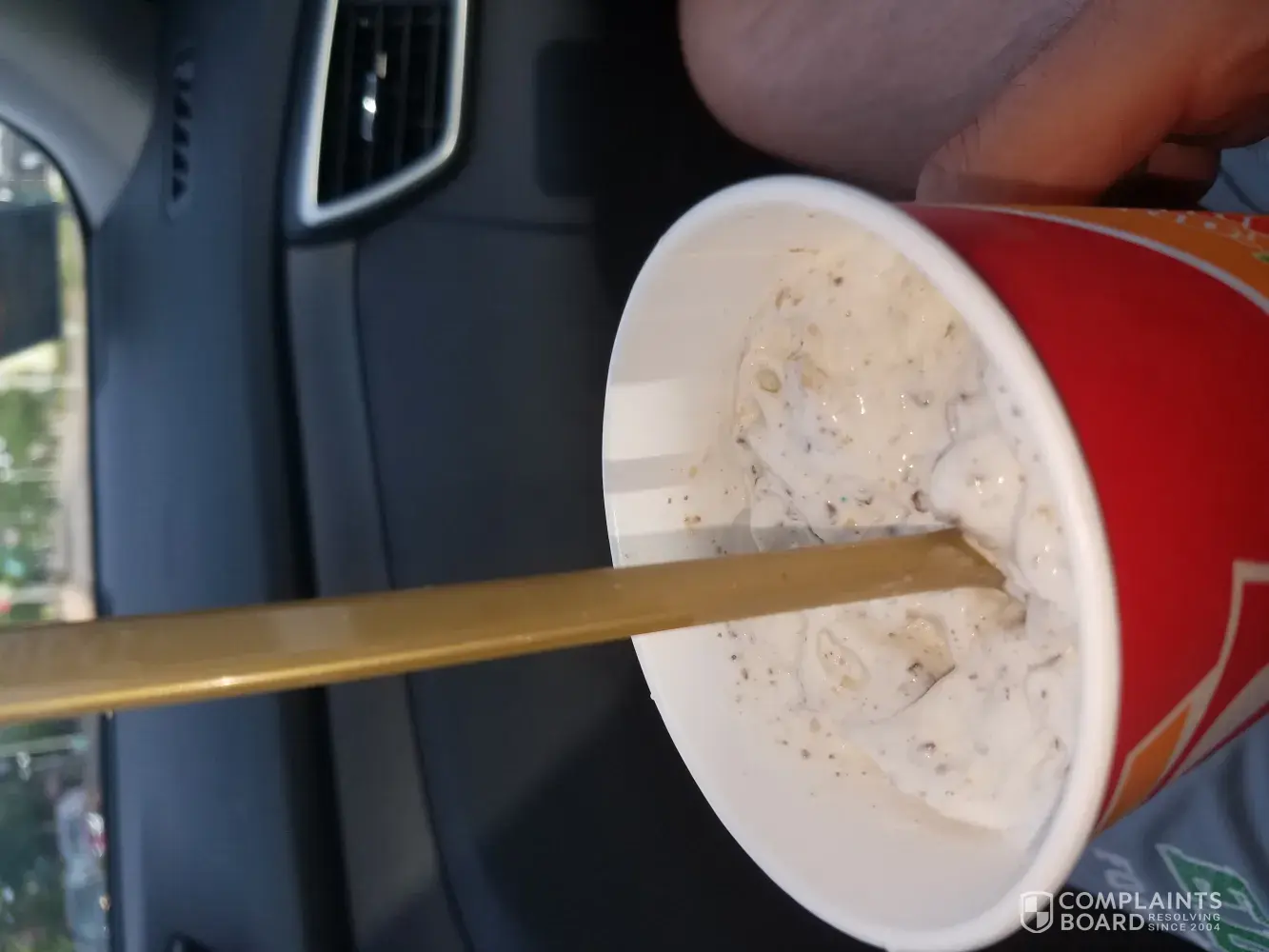 I tell the manager and request a free blizzard. The employee then proceeds to lie to my face, while standing under two surveillance cameras, that he did serve the blizzard upside down. The manager reluctantly writes me and I.O.U. for a free blizzard instead of giving me a coupon.