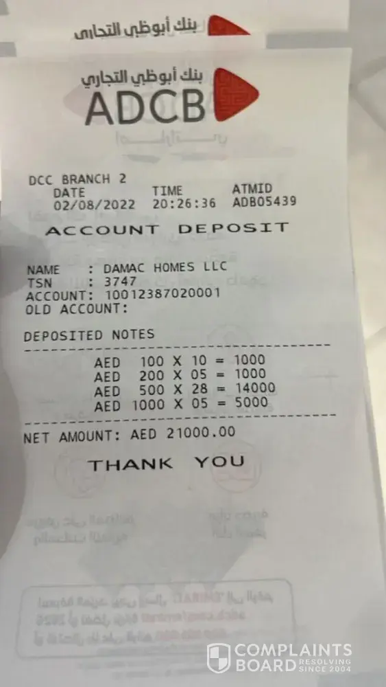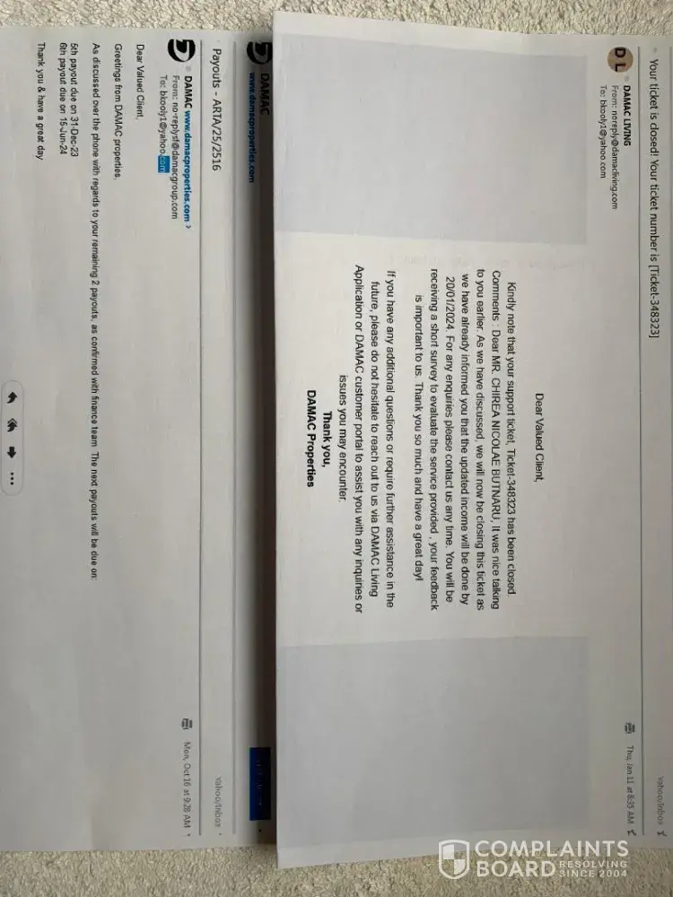 I did not get any answer/email to my compliant until May 08.2025. I'm still hoping that Financial Department is having an enough professional person able to solve my problem. There are five months from the date you issued a wrong Statement of account for my unit. This big delay in answering/solving my problem is a sure way to ruin my trust in DAMAC Properties.