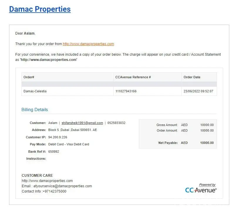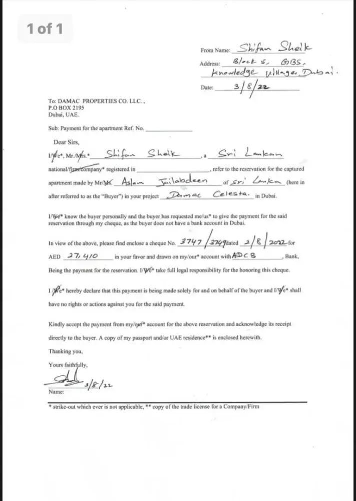 I, M.J.M Aslam from Srilanka, is writing this email with a deep concern requesting for a refund of my payment that I made to reserve a Unit at Damac Celeista.