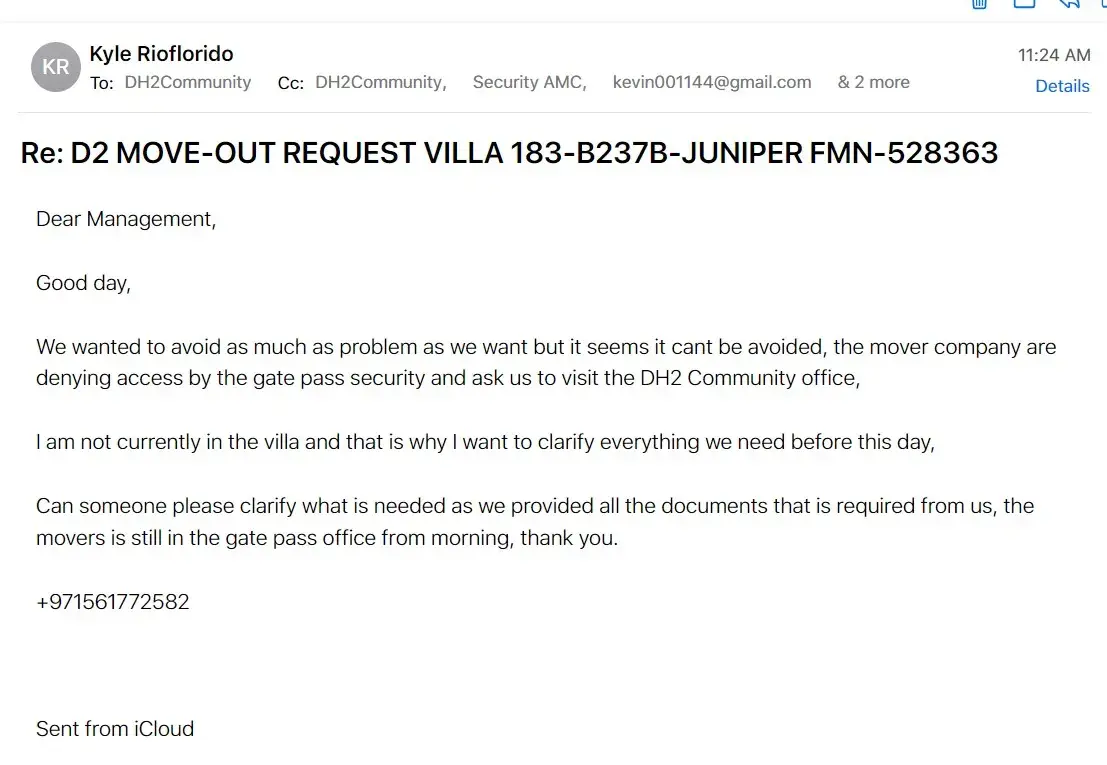 Gate pass office personnel aside from BEING RUDE, doesn't even bother to read the email that is being shown to them by the mover company that we rented and my brother (who came home from work just to check why the gate pass office is denying access to the mover company), we are well aware of the schedule and moving dates allowed by the community and made sure we followed that carefully, despite having the confirmation from LOAMS DH2 and NOC shared to security team as well and email from the registered email from the landlord we are still rejected by the gate pass office and ask us to visit DH2 office in community center, my brother went there and ask the admin and the admin called the security gate pass office and instructed my brother to show the email, the EXACT EMAIL my brother is showing to the guy on the first place which he doesn't even bother reading it and insisting to go to the DH2 office,