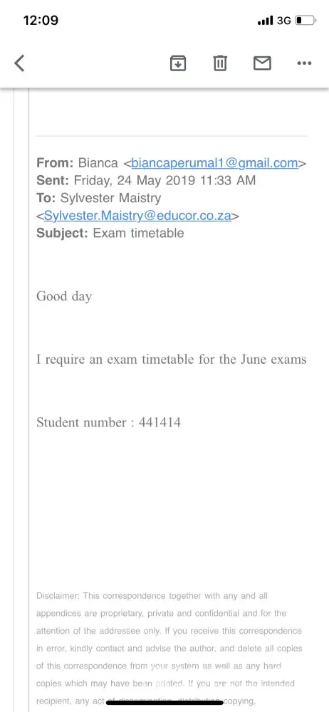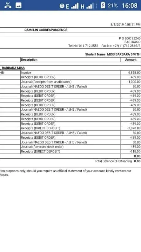 Paid my fees in full when I registered. The student advisor told me to use my ID number as a reference because she couldn't give me my student number until I paid for the course, that was in February. Damelin has been sending me notices that my fees are outstanding. I've emailed the receipts to about 5 different people for months now and they still haven't rectified my financial records. I have not received my exam timetable or assignment results and it's already 22 May 2019. Yes I submitted my exam application and paid for the exams. According to Damelin I was supposed to receive my exam timetable on 3 May 2019 and exams starts from around 4 June to 14 June. How will I be able to request for study leave for my exam without proper notice? And when do I start preparing for exams without feedback for the assignments and without my exam timetable?