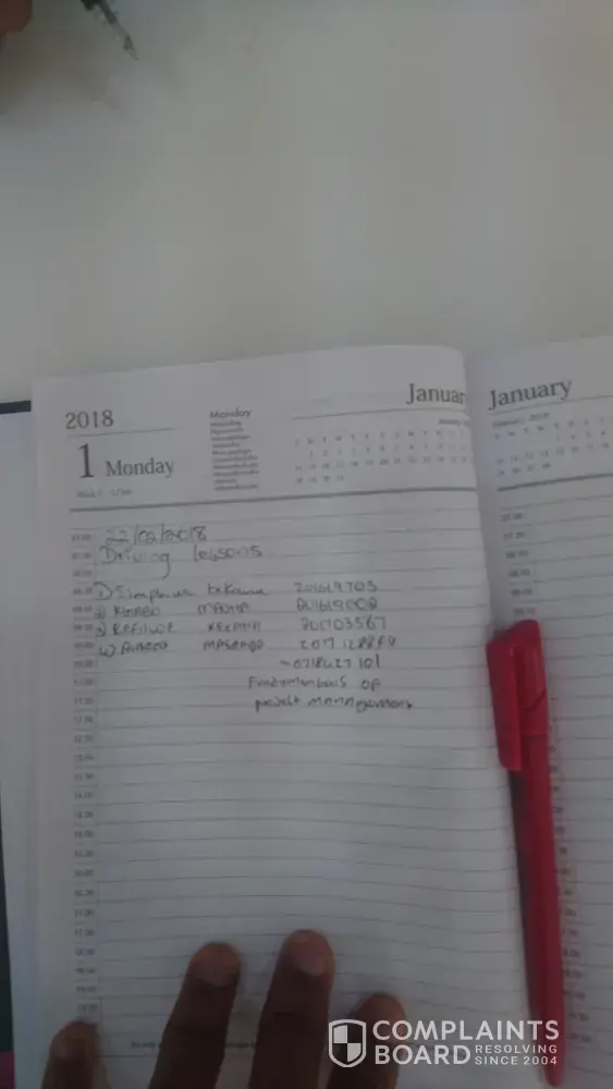 5. She said she will get a diary, she then asked me to put my name down on the list, when I went through the list I learned that it was appointments for drivers licenses (attached). I asked if she is mocking me and she responded with an attitude that I can write my name wherever I feel like writing it.