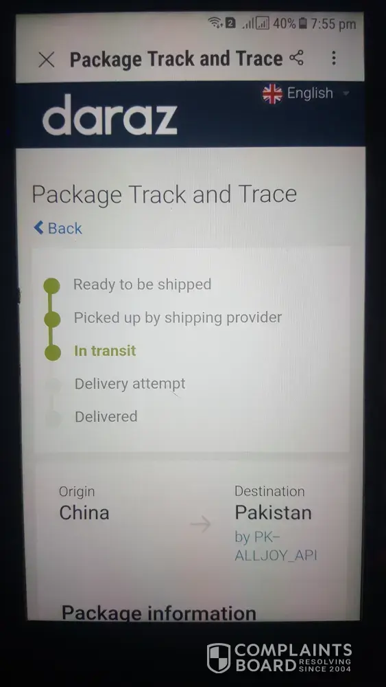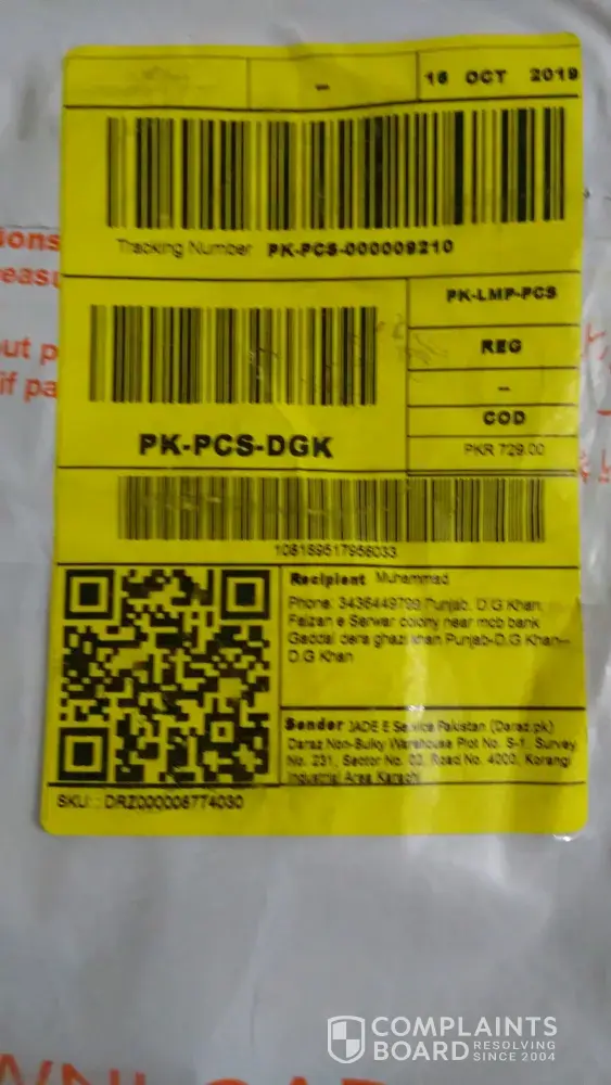 Sir, i book my order through dararz vide order no. [protected] on 4 sep 19 and daraz Conway to me that my order is shipped on 6 sep 19 vide shipping no. ALJCF9248000112YQ. Sir this shipment is not received to me till date. Sir way the shipment is to late. Sir send my ordered shipment earliest as soon as possible please and if any problem in sending of item ordered please inform me.