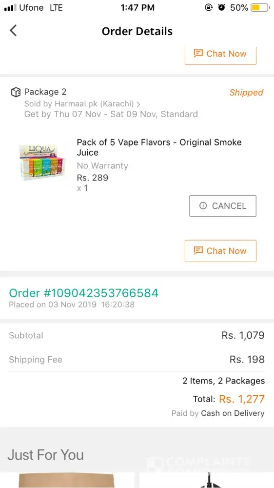 Salam sir mainy 2 keychain mangwai thien (seller name = h. S traders) say tw inho nay mjhy 1 keychain deliver ki h or website pay status update kr diya kay dono deliver hogai hain. Ab main inko mxg kr rha hun tw yay respond nhi kr rhy hain. Mainy payment bhi card say kr di thi advance par ab yay mjhy respond nahi kr rhy now tell me main kiya krun yay tw najaiz h na. Main apko us product ki picture attached kr kay de deta hun ap daikh lain please kuch krwa dain.