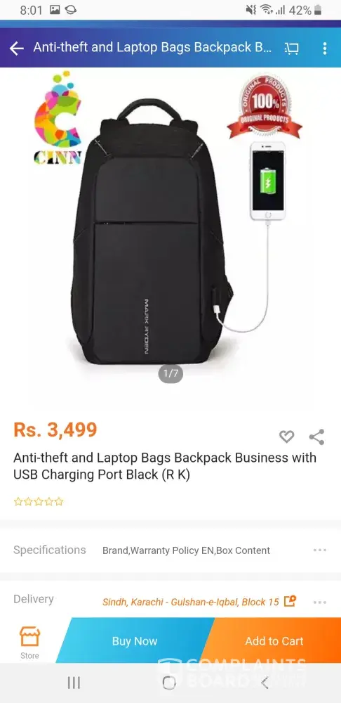 I ordered a backpack few days ago from daraz.pk website. My order number is #[protected]. It was a backpack of company named "Mark design"