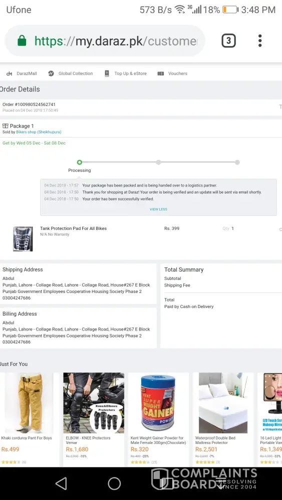 I am really really very disappointed with your shipping daraz.pk