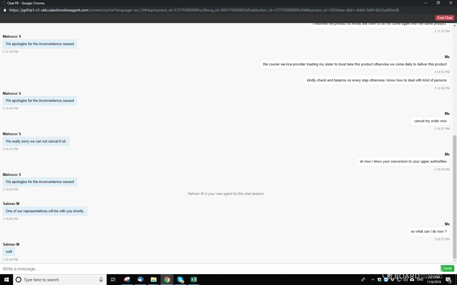 Kindly see the attached screenshots I talked two persons on chat room all conversation shown on screenshots.