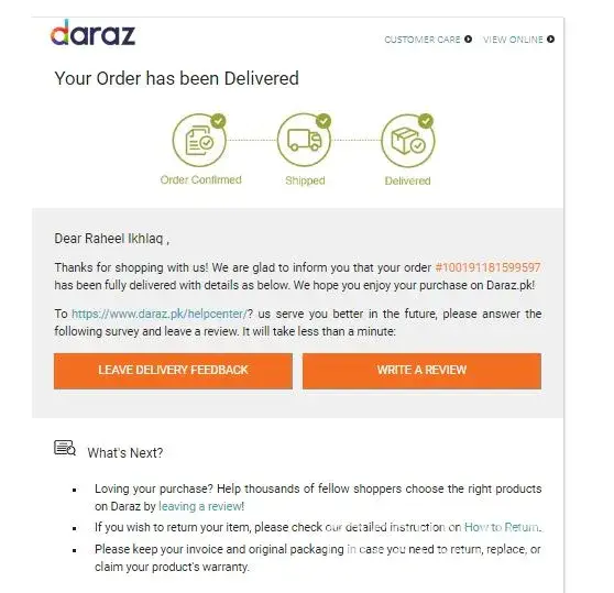 Then on the next day i complained on your daraz helpline number.They told me that " delivery status of your product is not updated so please wait and make a call after 24 hour.