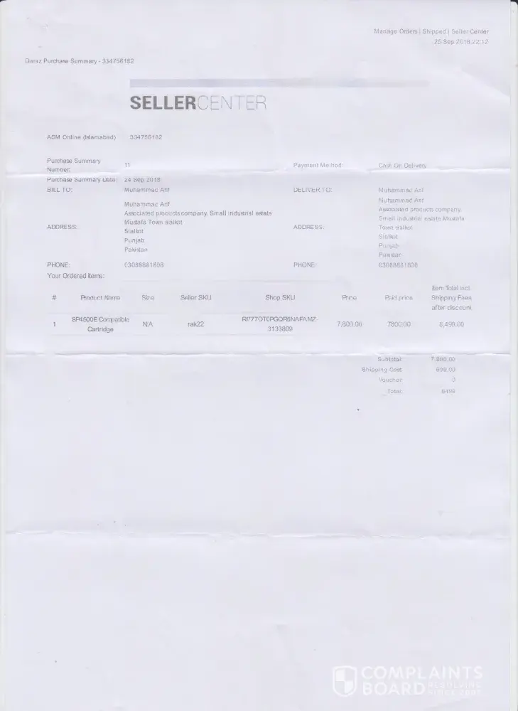 Please note that i have ordered the subject product from Daraz on 9th Oct. order # [protected]