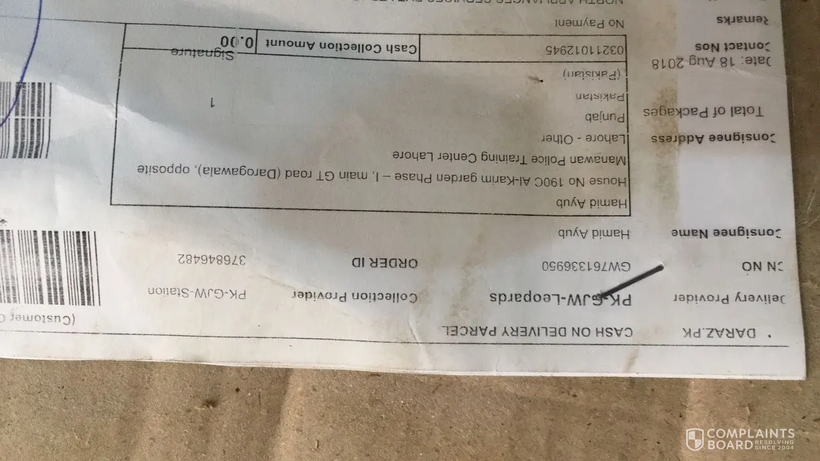I ordered three items on Daraz.Pk online