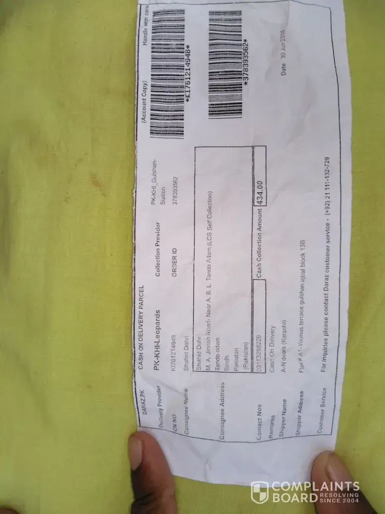 Assalam o alaikum dear daraz service providers I just order a product from ur daraz app and when I collect my oder There is 1 pec missing I m or regular client kindly help me for this big trouble Order I'd is [protected] cn .no is id [protected] shipper name is pick 1 store Rawalpindi shipper address is house no 983 block b satellite town Rawalpindi delivery provider is leopards my address near kanwal cinema Bhutto super store lodhra road shujabad Punjab Pakistan. Product receiving date is 11 July 2018. From Asad kamal.