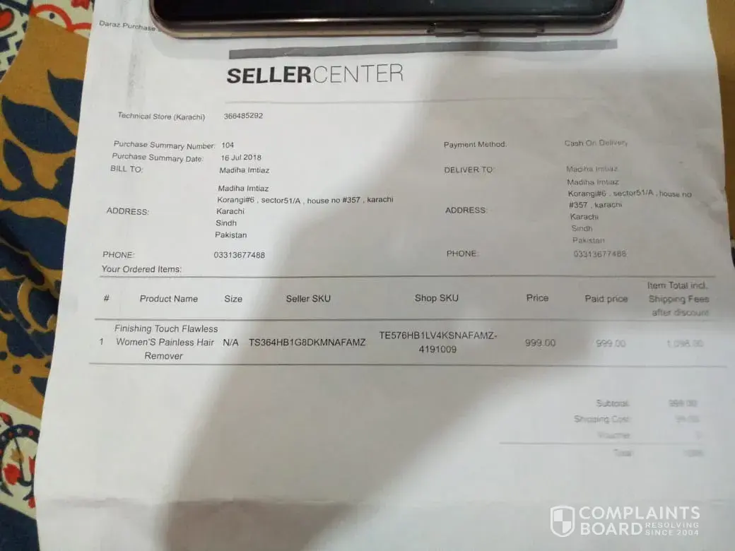 Very shameful for such a Large Online Store like Daraz.pk, their vendors send defective & used products to their customers, most of these products are those which had already been returned by customers previously. Recently i had a same experience, i ordered a shaver & guess what ? It was already used & even had hair particles in it. Very very disappointed by Daraz.pk