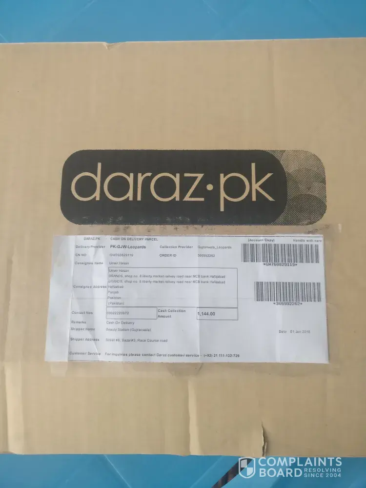 I received daraz parcel at 12pm when open it the cutter is damage. I call that nbr given on daraz parcel and told the representative then she advised me the whole process of submit the complain on cca. Daraz after this I take 3 pictures. 2 pictures of cutter and 1 picture of daraz box and submit a complain on cca. Daraz and provided all the information that is necessary