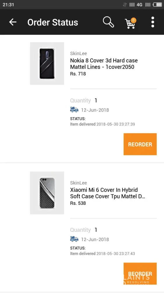 complaints against my order [protected]