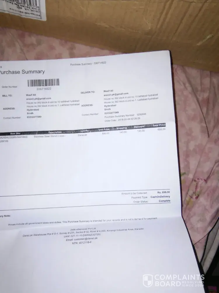 This is a serious terrible complaint that I had been very badly suffering by Daraz team. My order is not placed yet since calling many times, every time there is a satisfaction remark that the product will be delivered. Today was the last day, I called in the morning at around 11:00 a.m. asking for the delivery track, the representative kindly updated the request but I could not get the product, I did not leave the clinic for this purpose because the delivery person could have come any time. I had to waste a whole day with all commitments falling out of the ditch. I had to cancel many meetings and receive bad reputation very bad words from my appointments just for the sake of one single order. This is very bad, since my clinic timings are important. I had to be very shameful. Please make sure that this order is placed. If it is spam or commitment, I will not be sparing myself for committing to this mistake, I have already given words to a very poor girl, my maid for her gift to be given, but order not received. So much time has been wasted. I hope Daraz is not a spam portal.