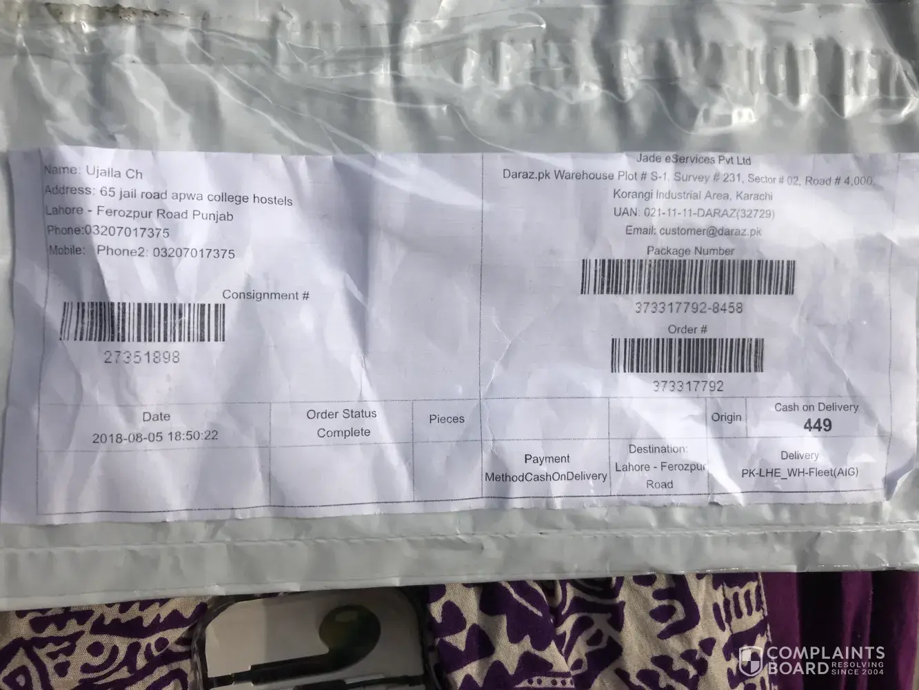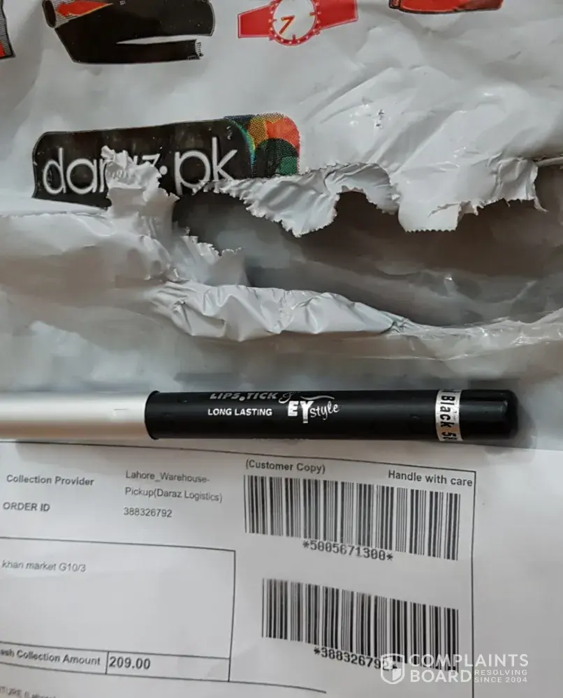 I want to complain about daraz.pk that the product ordered from there are damaged, the first pant it torn, second pant is sewed from inside as it was torn from outside and made to look like a design, the third pant is also sewed from inside because of being torn.