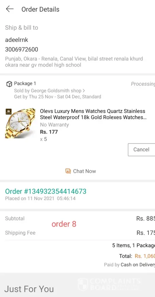 It's therefore requested to cancel my order and also Make sure that The Said TCS Office Nawabshah delivers the stuff in time to other customers especially Iftikhar Shah employee, a very irresponsible person and misfit for the job