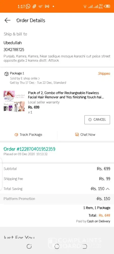 Date of incident : 09 dec 2020, I am tashi malik. And I ordered a pack of 2, combo offer rechargeable flawless facial hair remover and yes finishing touch hair removing machine with usb cable imported but receive only one non rechargeable machine without finishing touch hair removing machine with usb cable imported in same price it's not fair... Now if possible fix and full fill my ordered deal pack (pack of 2, combo offer rechargeable flawless facial hair remover and yes finishing touch hair removing machine with usb cable imported) recover and return my original ordered machine otherwise give me back my whole money...