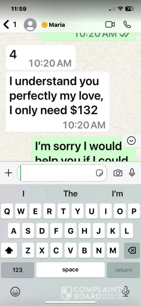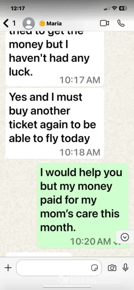 I was lured off dating.com to WhatsApp to be scammed for money. A popular member Maria 44 years old told me that she was catching a flight to come and see me. I gave her my phone number which I shouldn’t have done. She told me I was the only one for her. She contacted me on WhatsApp the next day and said she was in Colombia and she said she is from Venezuela. She informed me on WhatsApp that she missed her flight. She claimed to need $134 dollars to be able to catch a new flight. I think it was $134. I don’t give money out to people I haven’t met. She contacted me until I told her I couldn’t give her any money. So be aware of Maria on dating.com. I have the screenshots to prove it.
