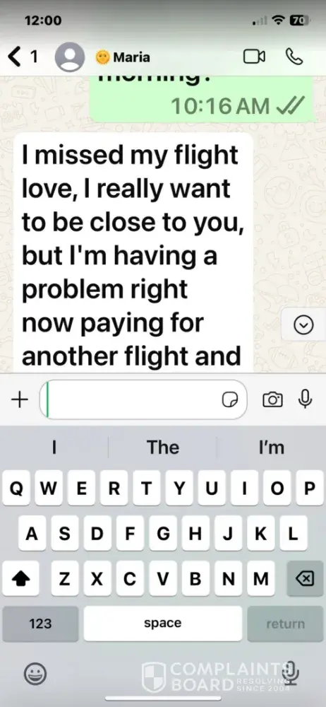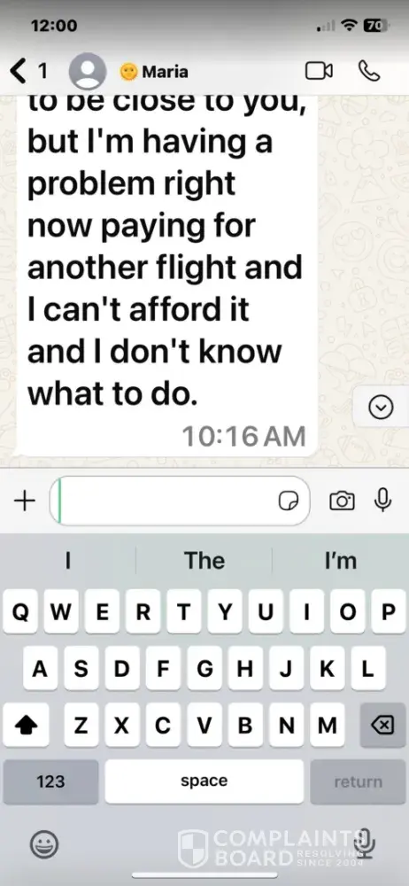 Dating.com did nothing about Maria using their platform to tell people she is coming to see them. I then gave her my phone number which she was the one to contact me early the next morning. Maria said she was in Colombia and missed her flight. Then she told me she had to pay for another flight. She said she needed $132 for another flight. So she was asking me for the money to get another flight. Never believe anything you are told on these platforms. Never under any circumstance give them your information. Don’t give anyone your personal information. I knew dating.com would not do anything and said it wasn’t on their platform that all of this happened. If you use these platforms be very careful because I have learned about scammers from using their platform. It has taught me a lesson. My next complaint will be the Federal Trade Commission. I have evidence for 2 years on their popular members lying and misleading information. They deserve a Grammy for their acting career. Because they will use your emotions and manipulate you to make money. Plus the ones I have talked to are models in real life. Plus they have girlfriends or are married in real life. Don’t waste your money or time on them. It’s all just a illusion. They send out messages from a bot all of the time to make you think they are interested in you. I will not let this go and I will continue until something is done. Don’t involve dating.com if you have a problem. They will do nothing about it.