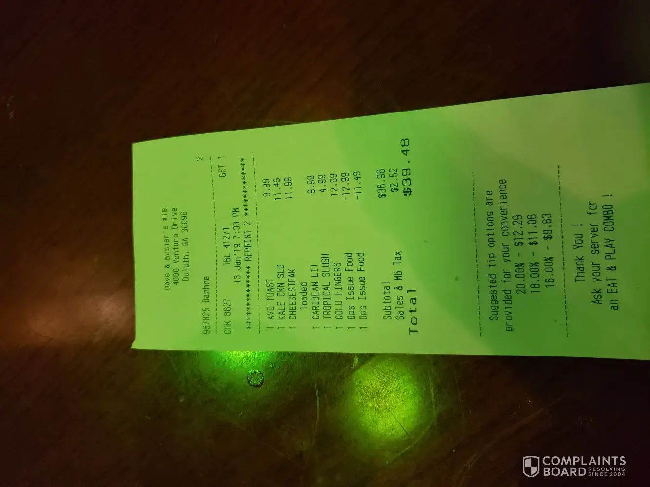 Myself and a friend went to visit at the Duluth ga location on 1/13/19 @ 7:33 PM. Upon arrival we decided to grab a bite to eat before heading to the game room so we sat in the bar area @ table 412. So we sat looked over the menu made our selection and waited for service. Not to mention there was a server sitting directly next to our table on the phone whom was not concerned about providing service until we approached the bar and asked for someone to take our order. The young lady named beauty at the bar said it was not her section but she will be over soon. Well this is when the young man at the table next to us decided to jump up and now provide us with poor service. He took the order and we order everything at once knowing we would not get much service after that. My friend had a Caribbean drink and I ordered a Tropical smoothie. We recieved our drinks and apps promptly. Not even halfway thru the app our food arrives. MY friend kale salad which clearly was not a kale salad tasted like fish. I ordered a philly with more vegetable than meat. She sent the salad back and ordered gold finger which came out cold. So at this point we are not happy so I ask to speak with the manager. The lady man of a manager came to our table without a smile and not so convincing apology. Offered to rebook gold fingers but at this point we ready to leave. She attempts to comp the check but cant find it. After she supposedly comp our food there was a entree left on the ticket so the manager had to be called to come back and correct her mistake so this time I had to let her know just how terrible the service was from BEGINING to End and she seemed to have no care at all as to my concerns as a paying patron at this establishment. Even though I was made aware by the bartender that this location will be soon closing by the end of Feburary is no excuse to the poor service recieved on said day. This was the worst experience I ever had while visiting one of your locations and not sure if I will return if this is the type of service you provide to your guest. The resolution to this issue would be a full refund. Thank you and God bless.