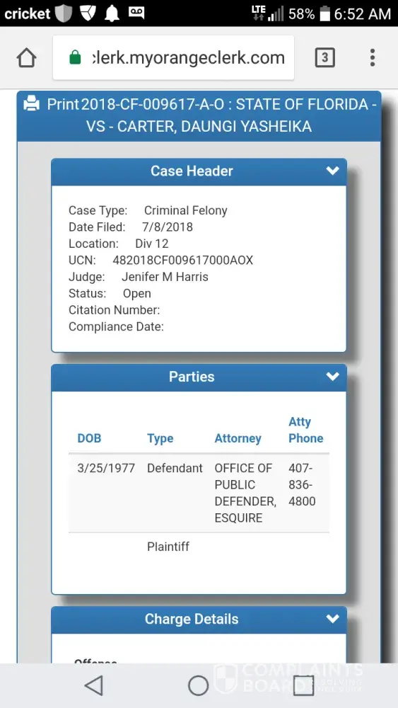 This case was thrown out amongst other after. This individual is being targeted by Marshall Long and others (government/community of Fern Park and surrounding, and work places). This attack must come to an end. This program is called Gang Stalking is for real, research and see what you come up with! There are thousands of people being targeted in the U.S. and in other countries as well.