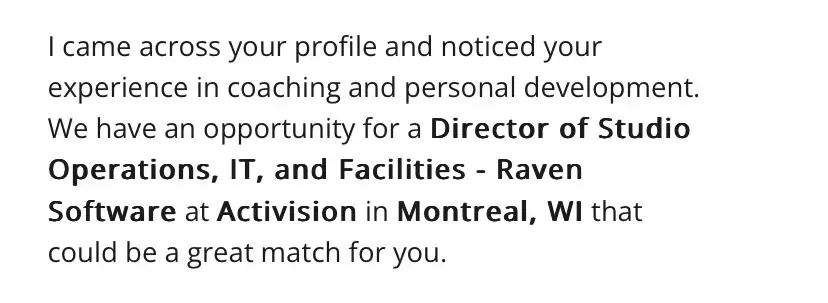 David Careers sent me an email soliciting my application for a Director of Studio Operations, IT, and Facilities for an animation software company. I have zero experience in IT, in animation production, or facilities management. I could however _play_ such a character. Maybe the career of Jen in ‘The IT Crowd’ also started out with an email from David Careers.