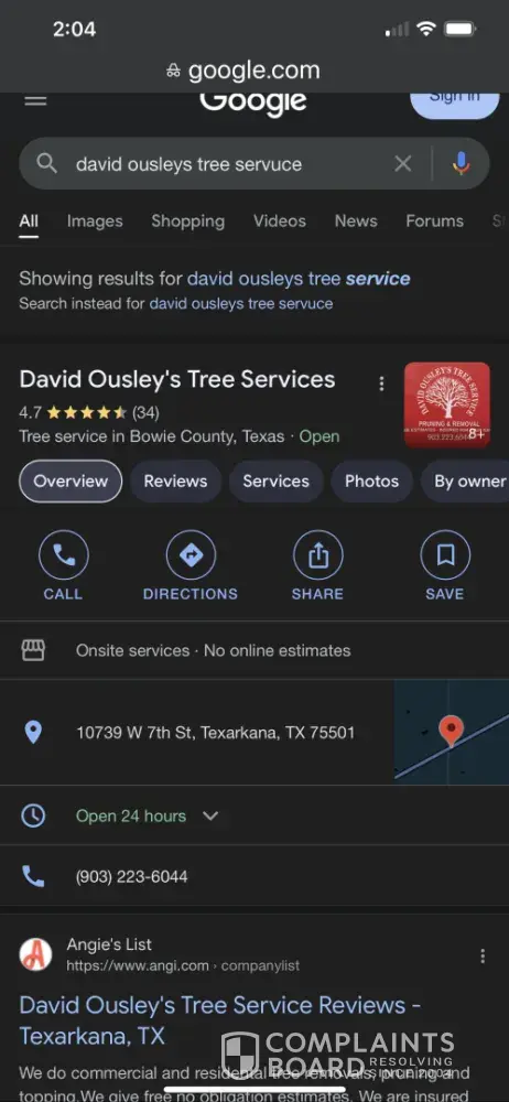 Read full complaintDavid Ousley’s Tree Service Reviews and Complaints