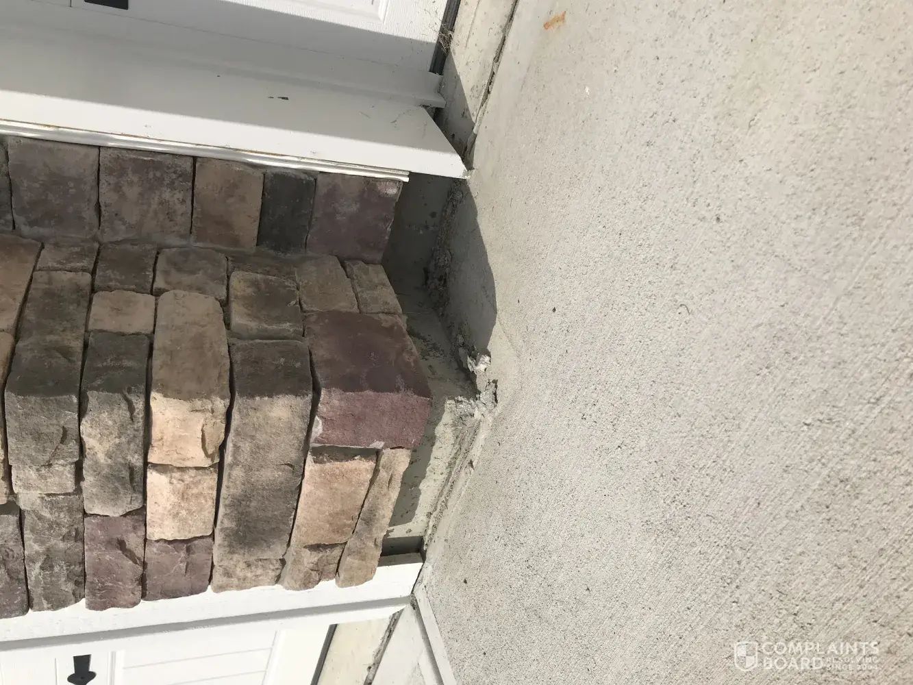 7) unfinished stone work making the house (over a half million dollar home) look like a modular home