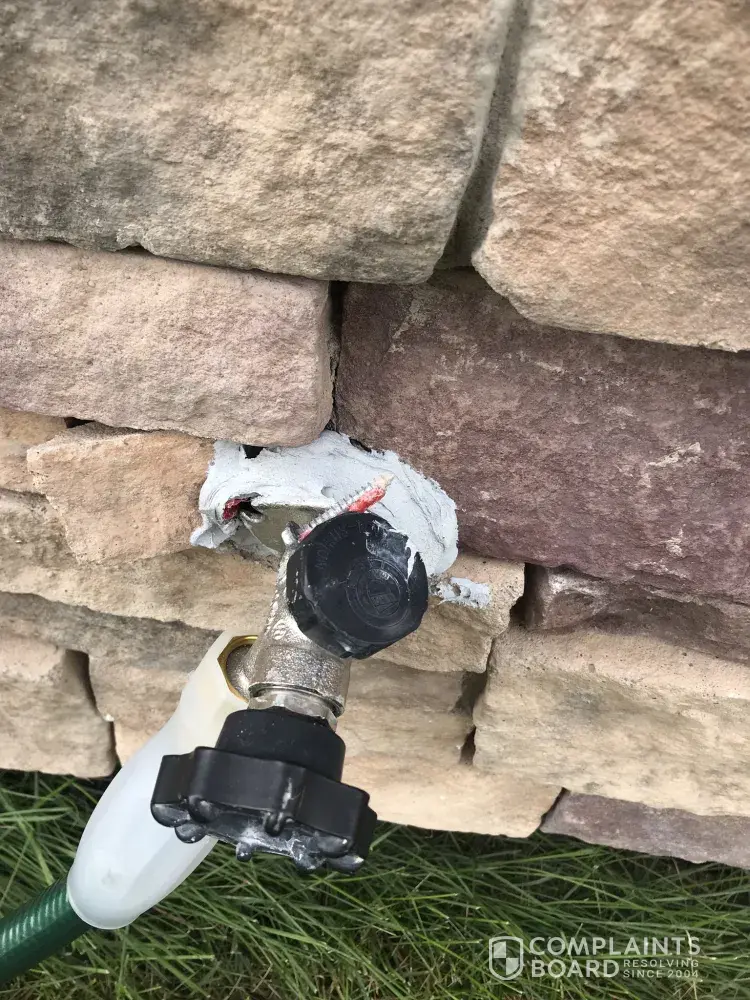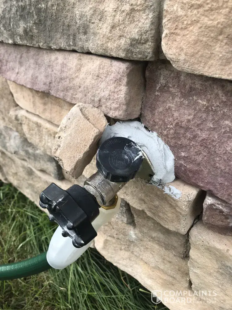 4) hose spouts leaking falling off the house and "repaired" with caulk that looks terrible and continues to be loose