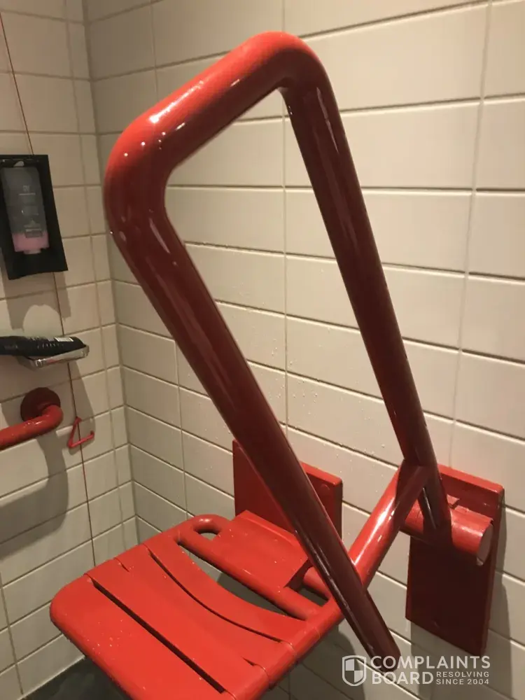 All we both wanted to do was to have a shower & come round, have a nice drink & go to sleep, the wet room was very dirty as you can see with the pictures I am attaching to this email, the drop down seat had got 2 damaged slats on it, the pull down hand rail to the shower took us both to pull it down it had clearly not being maintained every & it had never being cleaned on joints, the shower curtain rail was broken hanging off the ceiling bracket, the wash had basins were both not cleaned correctly including the over flow being black bright with dirt, when I did managed to sit on the shower seat the water in the shower would not get hotter than Luke warm & the pressure was rubbish & then to top
