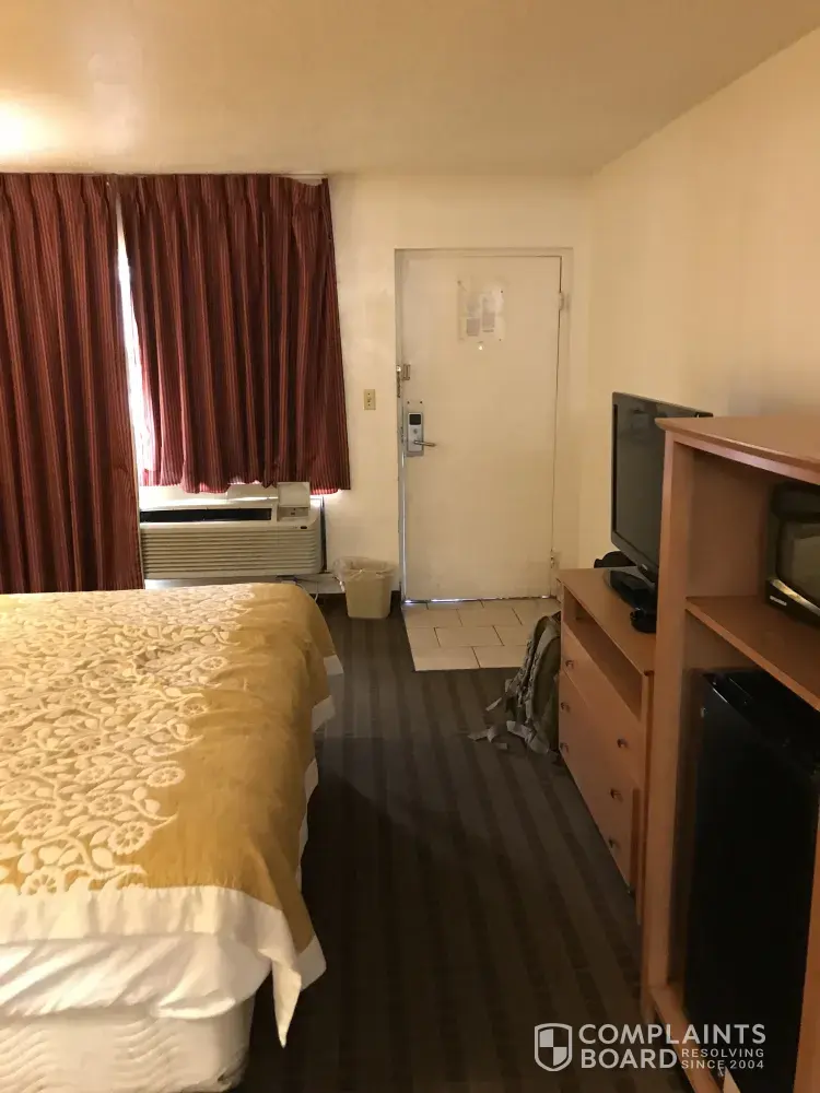 I booked online and was totally disgusted of the room and property. When I got there in Fort Worth, the hotel premises looked like section 8 or druggies lived there. I asked for a refund from the management and they said that no refund ! I didn't even stay there lol. The bed comforter had burn holes in it. The bathroom had drywall damage(cave in) and no toilet paper holder. The room lights didn't work and the carpet was nasty, like nobody vacuum in months. I won't have my dog stay there lol. The outside parking lot had down and out people just hanging out. Some of the cars look like been thru figure 8 race.