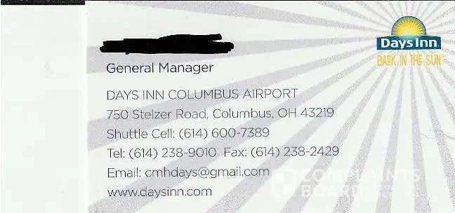 I stayed at Days Inn Columbus Airport the address is 750 Stelzer Road, Columbus, Ohio 45822. The dates were April 12-15. I have a lot of problems with the stay.