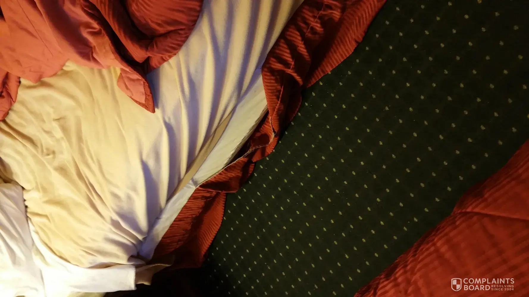 Booked room ahead through hotels.Com based on pictures included in their overview description. Worst place my husband and I have ever stayed. The attached pictures are of room 208, hallway to said room and bench in hallway by elevator. I have more pictures if you need to see them.