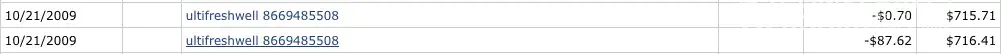 I ordered a "free trial" of tooth whitener from this company for $1.95 S&H. I am not a stupid woman, I looked all over that site for terms and conditions, read them and didn't see anything about being enrolled in a "membership" and being charged $87.62 for the product after 30 days! My visa fraud dept alerted me to this charge on a sunday morning..I told them I had no idea what it was for (the biller was Utlit Fresh Well!) and the number attached to the charge was bogus. When I received this so called "free trial" it came in a plain envelope, no return address, no paperwork inside saying how to return it if not satisfied, no paperwork of any kind, stating terms and conditions etc..nothing to alert me that I now had a "membership"...had there been, that product would have been sent right back...I had a block put on my card, but the charge still got thru..I went down to my bank and filed a complaint, and not two days later, I checked my account only to find that these pukes had yet tried to take another $87.62. I called the company, at first they claimed they had no record of me, I gave them my return authorization number, then they found me and claimed they had not received the product back (total bs, I sent it back priority mail, which cost me a lot more than the original shipping and handling) going on 3 weeks ago...they said as soon as they received the product back it would take 5 to 10 days to process the refund. When I questioned them about the 2nd charge, they denied ever charging me! My bank can prove that they did... So far, no refund. And trying to get thru to DazzleWhite is nearly impossible..they keep you on hold forever, and I mean you can hold for an hour if you have the patience...when you do get thru, you just get the same line from them...they also operate under DazzleSmile and sell the Acai...so I'm guessing this company is operating under different names. When I ordered there were no terms and conditions on the check out page. Interesting to note that when I googled the bogus number, I came up with web page after web page of consumer complaints about this company. Only after reading and reading could I find a real number to call them. My bank says they will give me a "provisional" refund if they don't hear back from Dazzlewhite in 48 hrs...good luck with that...provisional means that they will give me my refund but if the transaction is legit, they will take it back! The bank already knows they tried to scam me a 2nd time, in fact they put the money back in my account, and now I still have to prove I was scammed. Also interesting to note, while sitting in the bank, I read an article by the FTC about companies like this..the article said thousands of people are being ripped off because the terms and conditions are so buried in their websites you can't find them, or they are very unclear, so you don't know that you are going to be charged a huge amount of money. I filed a complaint with the FTC about DazzleWhite, also sent a complaint to the consumer fraud board in Aurora CO where I returned the product to. This has cost me a lot of money I can ill afford, not to mention probably about 20 phone calls to this company, with no resolution. I called the company on Friday, Oct 30th to see how my "refund" was coming along, again they told me they hadn't received the product back, and did I have a tracking number? No I don't, because I wasn't told to send it back any special way, but I did sent it priority mail, $4.95 and scanned the envelope to them, which clearly shows the day it was mailed back, the return authorization number.