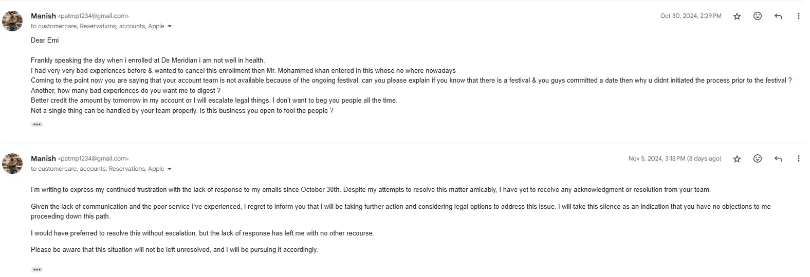 De Meridian is a Fraudulent Company! I am writing to share my horrible experience with De Meridian. This company has been nothing but a scam in my case, and I strongly urge others to be cautious. Here’s a breakdown of the issues I’ve encountered: *Booking Issues: I faced repeated problems when trying to make bookings, with no response from the company...