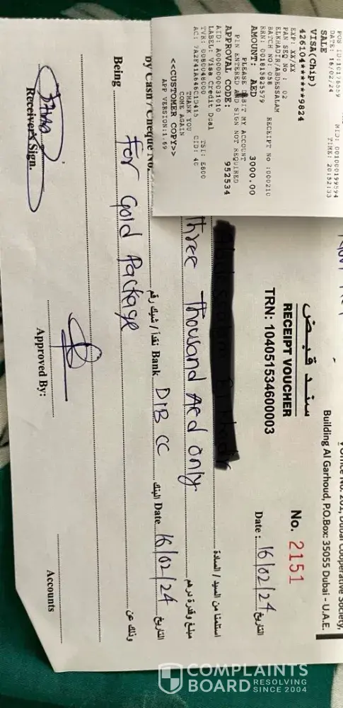 Hello there, I just recently paid them yesterday 6999 AED in advance in there POS machine suddenly all the comments here are making me cry and cant sleep because 6999 AED is very big amount they told me they will return it back the money with in 7days I hope they will return it back, that day im still in there office I want to cancelled my application but...