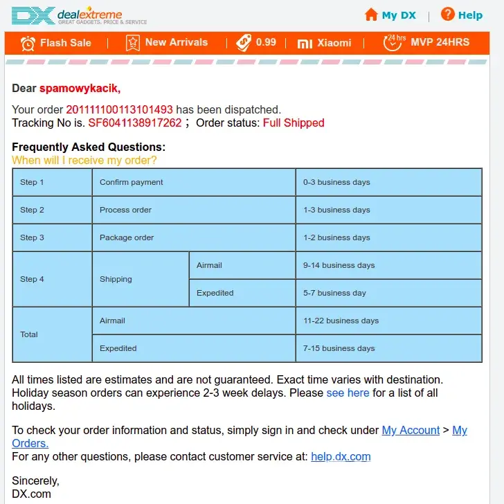DealeXtreme (dx.com) Review: Disappointing Customer Service and Invalid Tracking Number