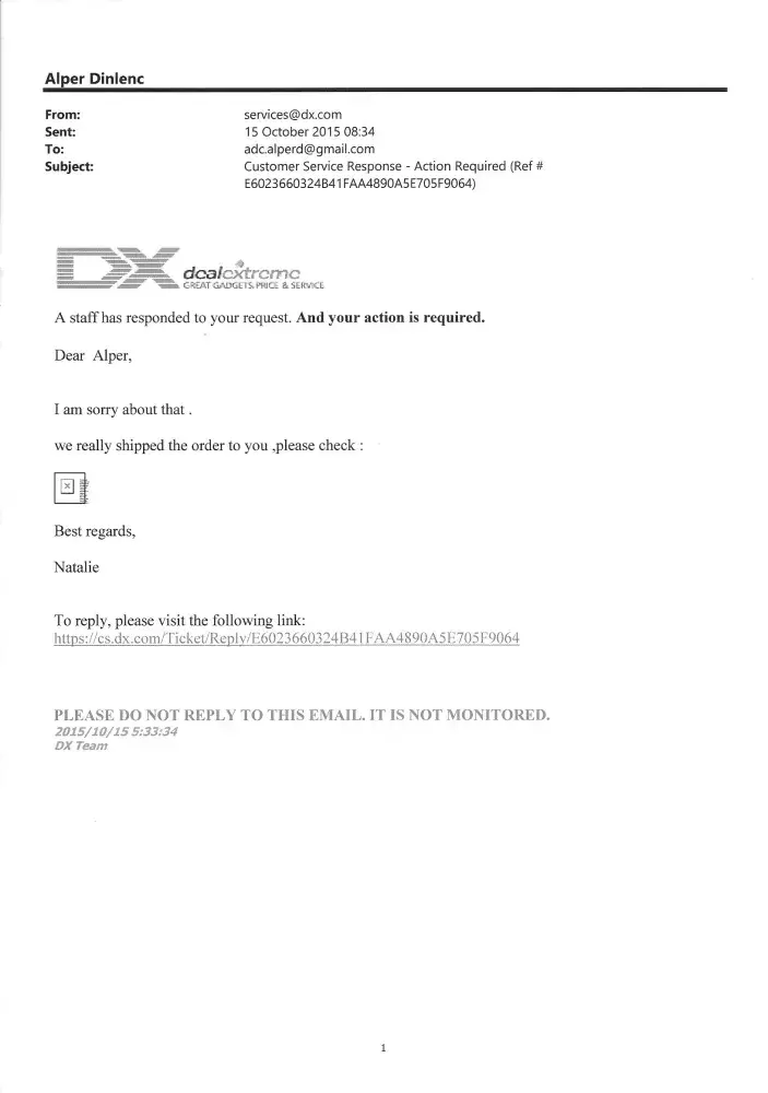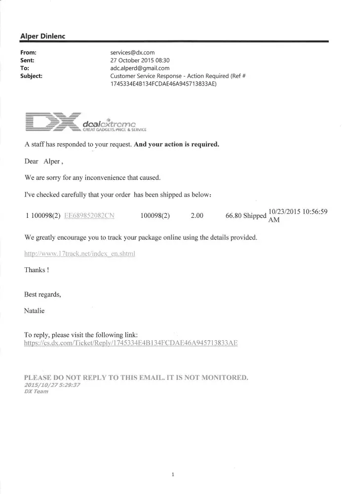 This company has nothing but horrible service. I made an order and purchased 8 things from DX. It was back in November! Well, it is January now and I received only 3 items. Only later I discovered that DX sent me invalid tracking numbers for the rest 5 items. I contacted their customer service and asked about where the rest part of my order was. But the only thing they can do good is making up all sorts of excuses. They did not send me anything and refused giving back my money. Luckily I paid via PayPal so I got my money back. DX is a very dishonest company.