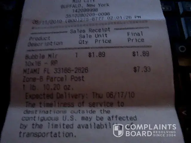 item never received