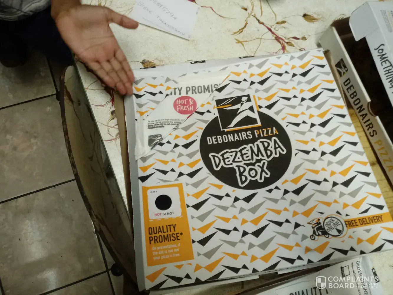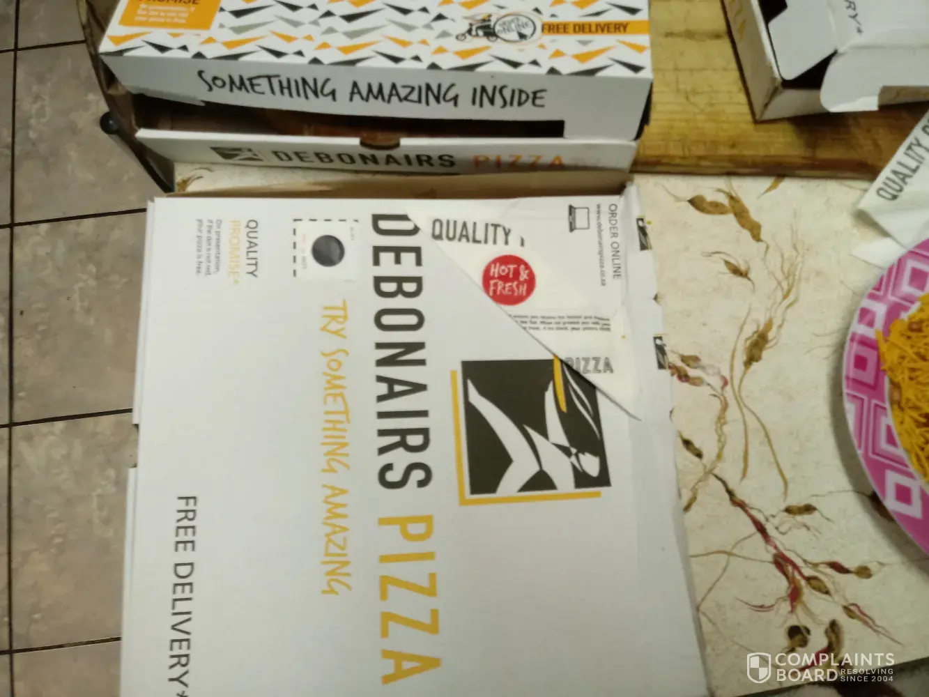 I purchased pizza for R370 on the 30.12.18 at 18:45, drove to the store as couldn't reach them on the fone. waited till 19:45 no delivery drove back to store as my 2 kids wanted to slp, manager couldn't get hold of driver got home pizza was delivered all the boxes and pizzas were smashed drove back to store and complained area manager Steve [protected], no help didn't answer calls or reply to my watsapp with photos sent, demanded a refund and left the pizza, will not be supporting Debonairs again. will be awaiting a reply.