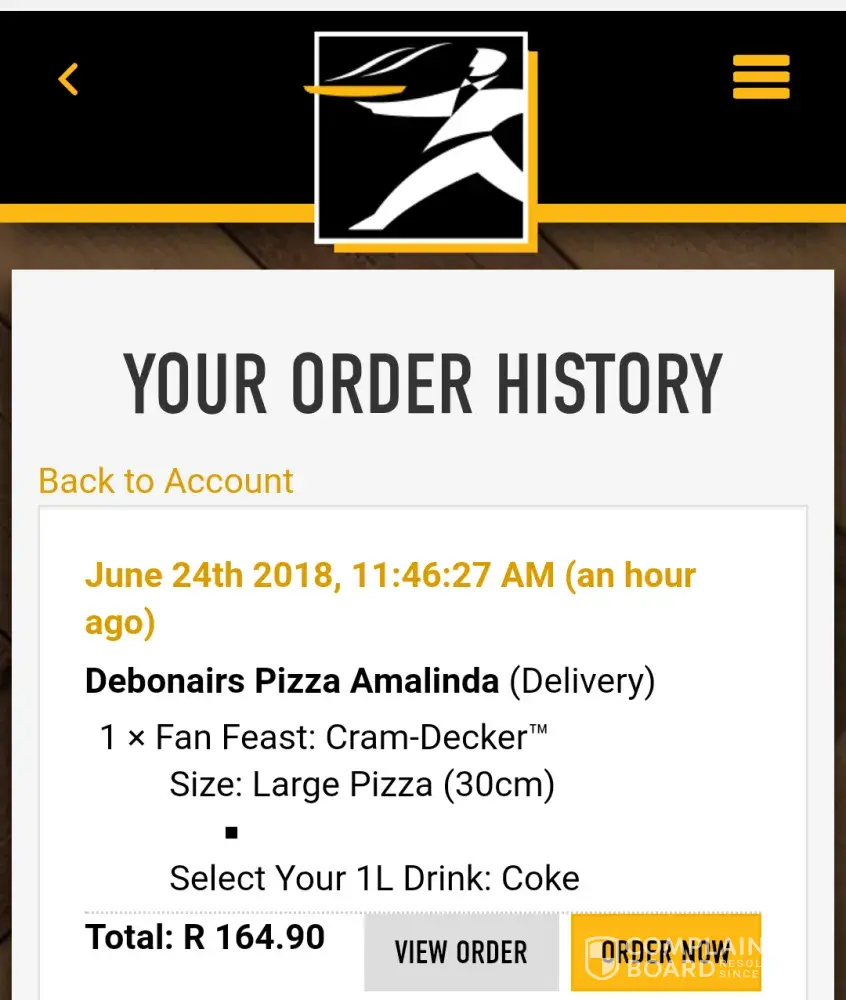 Debonairs Pizza poor service on online order and delivery