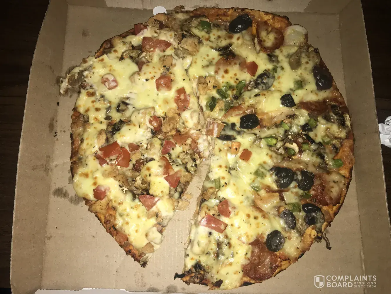Secondly, when I opened the box I noticed that it was not full / solid half's (looked like someone had cut a piece out of the pizza). Never have I experienced such sub-standard quality in any pizza restaurant. The pizza was not warm. I immediately took a photo and phone Debonairs Parow to report my complaint. The 'Duty Manager' could not assist me as she was newly appointed. Honestly, you would think that Duty Manager's especially would have had comprehensive training! I then asked her to arrange the owner of Debonairs Parow to phone me at 09H00 the next morning. No one phoned bac*