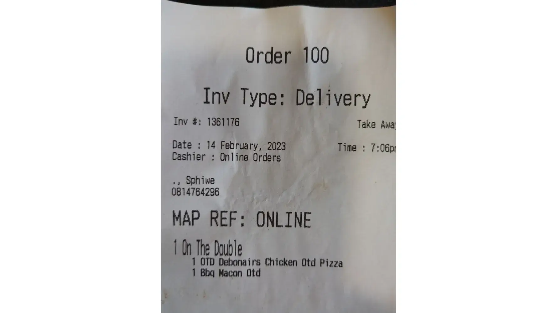 Debonairs Pizza pizza not received