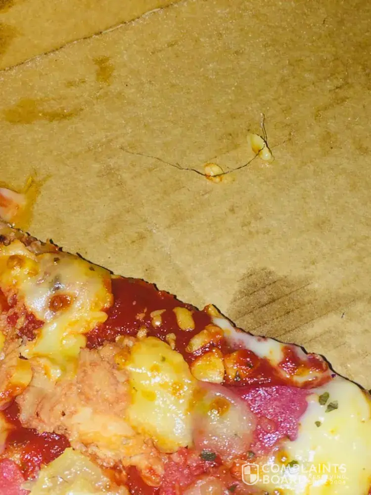 My wife ordered a pizza and the pizza had a wire inside it. The wire looks like a wire from a wire brush.