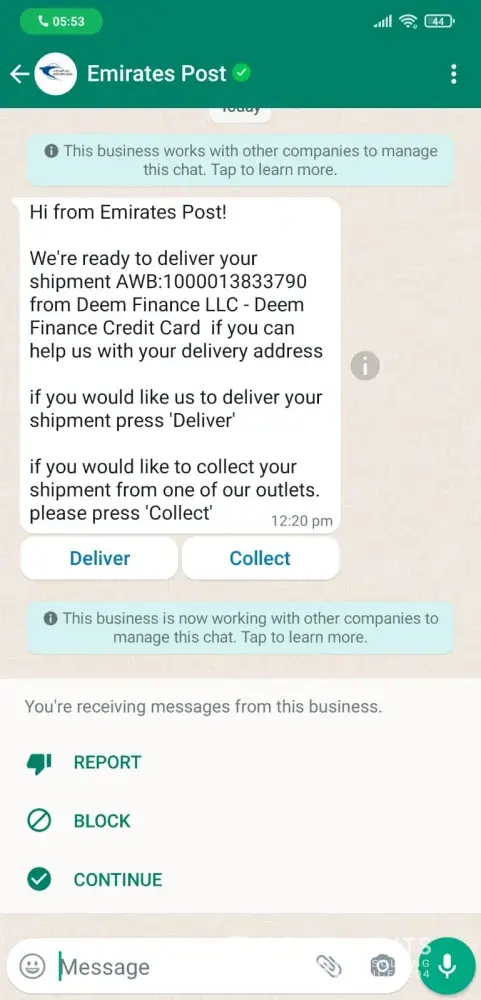 now after 3 days I got the message from Emirate Post about deem credit card delivery.