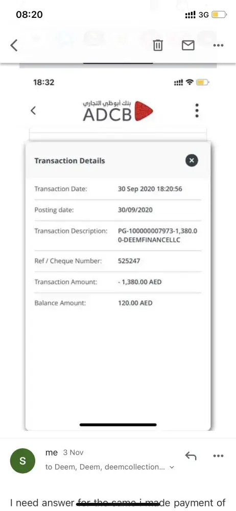 I have deem credit and I paid all outstandings in September 2020 before leaving UAE but the application is not updating and there was something pending that I paid recently before due date and shared the receipt also to deem customer care but they have not updated and your collection manager has sent me threatening mail to share my details to immigration as defaulter but I have already paid all my dues and the fault lies with deem for not crediting and clearing the issue.I am presently outside UAE and can't return .My registered mobile number was [protected] . Kindly look into the matter and sort it out .Thank you