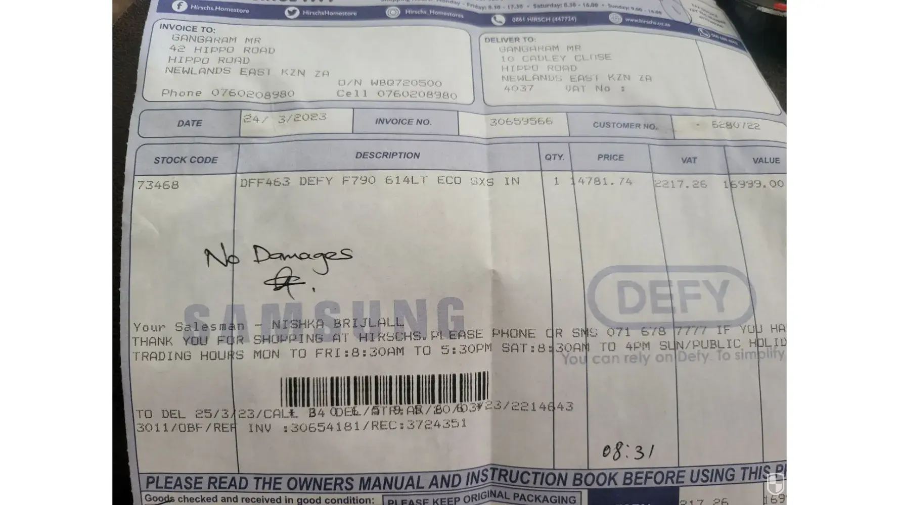 We bought a new fridge from Vkb Petrus Steyn. (26 July 2023).