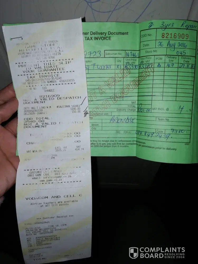 Good morning. I am so incredibly frustrated. I have bought a Defy fridge from Game in Bethlehem on 31 October 2018. My water dispenser leaks terribly and therefore I cannot use it. I have complained to Game who said that a Defy Rep would contact me within 24 hours - it is now 2 weeks down the line.