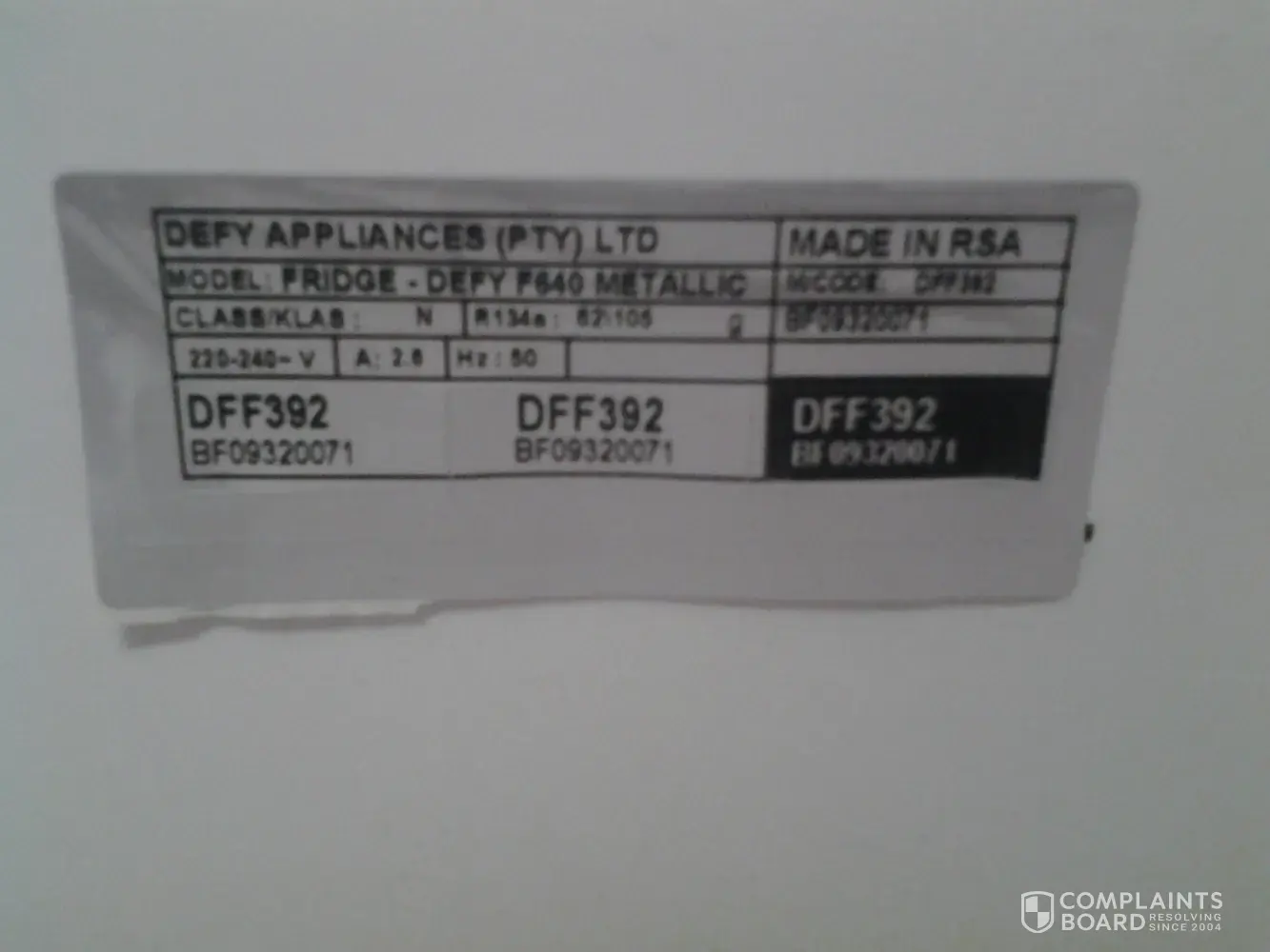Defy Appliances / Defy South Africa Complaints Page 18 of 19